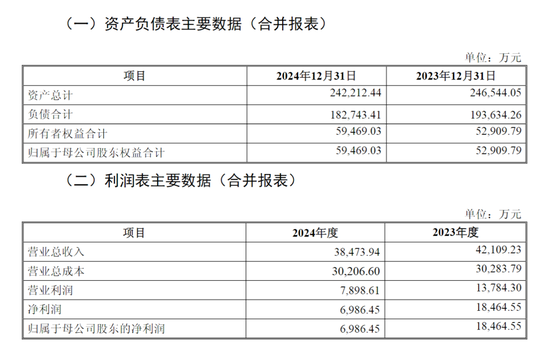 数据显示,2023年至2024年,天羽飞训的营业总收入分别为4.21亿元、3.85亿元;净利润分别为1.85亿元、6986.45万元。截至2024年末,天羽飞训的资产总计为24.22亿元。