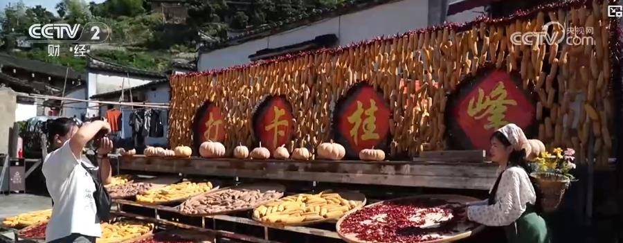 r在尤溪县桂峰村,一座座依山而建的明清古民居错落有致。屋檐下、窗台前、晒谷场上,整齐晾晒着新鲜采收的红辣椒、黄玉米、稻谷等时令农作物,明艳的色彩和构图,引得游客纷纷驻足拍照。